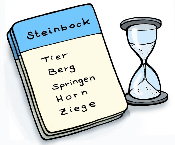 60 fertige Karten zum Ausdrucken finden Sie hier: Alpentabu-Karten, Stoppuhr