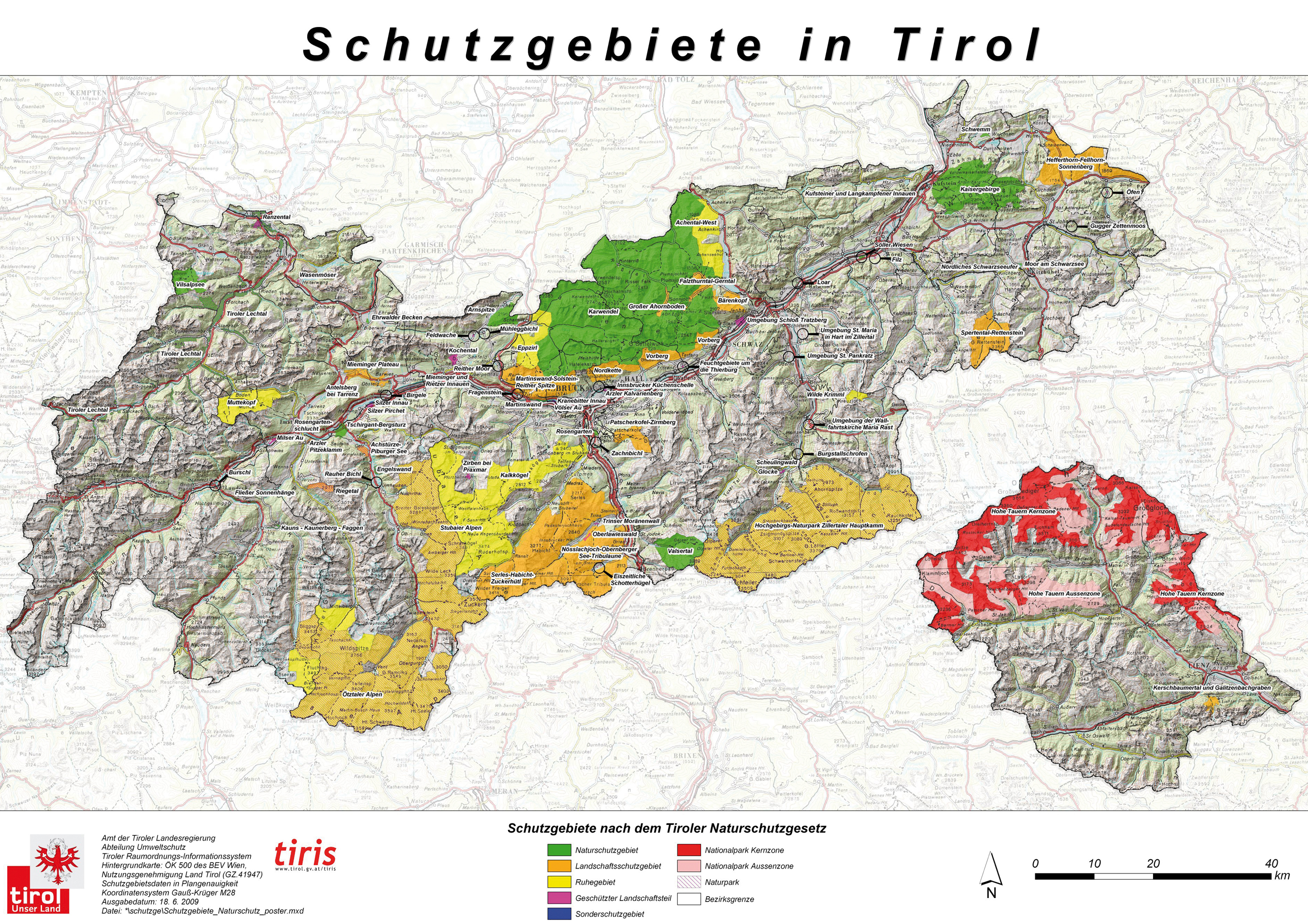 Sie gehen auf einen Landschaftsplan des Tiroler Forstdienstes aus dem Jahre 1972 zurück. Unter Ausklammerung des unmittelbaren Wirtschafts- und Siedlungsraumes, der dem Flächenwidmungsplan vorbehalten sein sollte, wurden für das gesamte Landesgebiet großflächige Ruhe- und Wanderzonen (insbesondere Waldgebiete, alpines Urland, Gletscherflächen), Landschaftsschutzgebiete (insbesondere bäuerlich geprägte Kulturlandschaften), Naturschutzgebiete und Naherholungszonen planlich ausgewiesen. Allerdings wurden diese Planungen des Forstdienstes alsbald „schubladisiert“. Lediglich die Schutzgebietskazegorien Ruhe-, Landschaftsschutz- und Naherholungsgebiete wurden in das Tiroler Naturschutzgesetz 1974 aufgenommen.