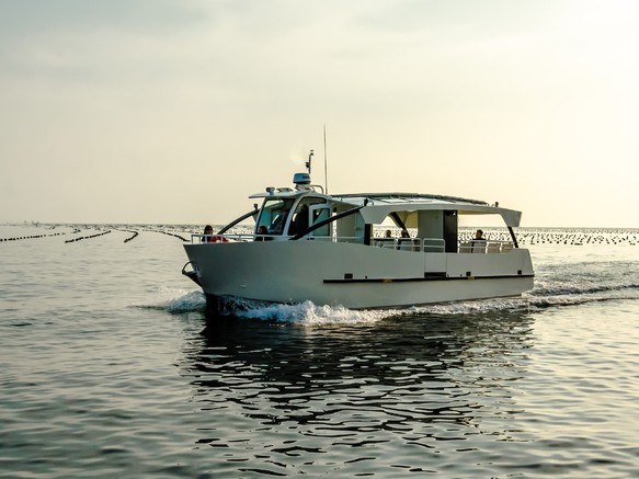 Ce bateau est équipé de batteries lithium totalement électrique et sa vitesse de croisière est de 6 noeuds pour une autonomie de 8 heures. Il est aussi muni de panneaux solaires sur le toit qui alimentent tous les équipements de bord