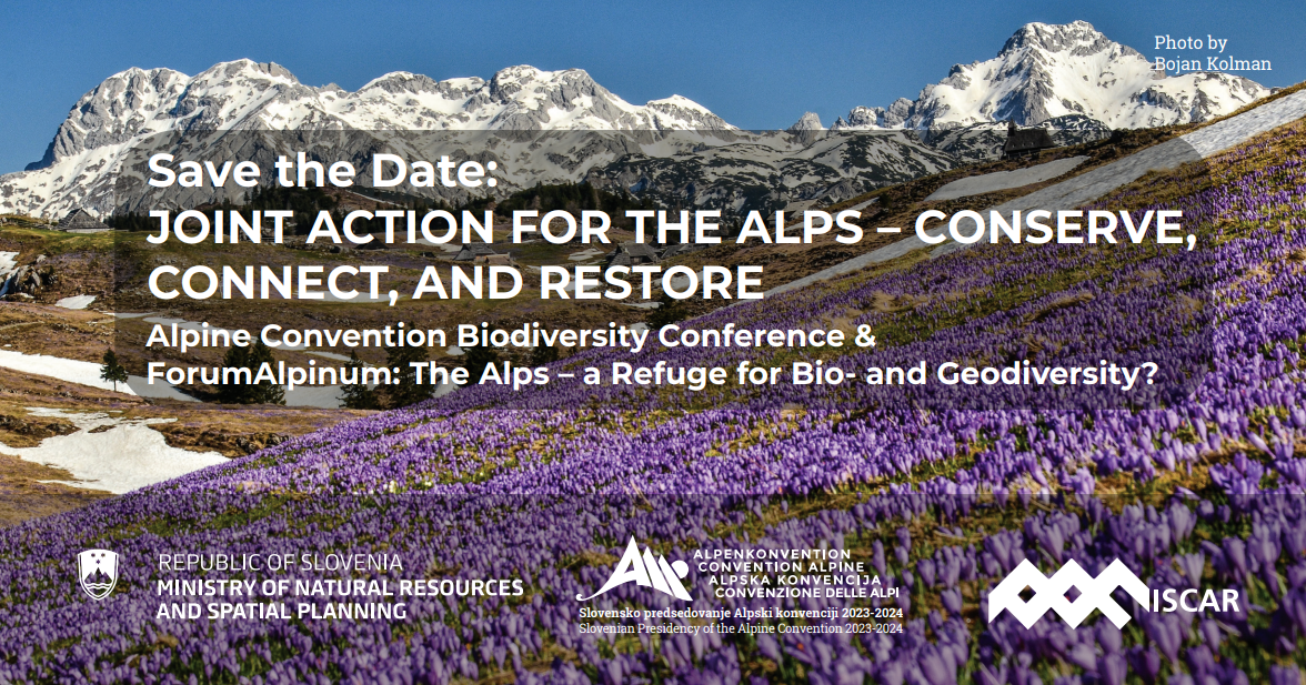 You are warmly invited to save the date for the upcoming conference "Joint action for the Alps – conserve, connect and restore” from 12 to 14 June 2024 in Kranjska Gora, Slovenia.