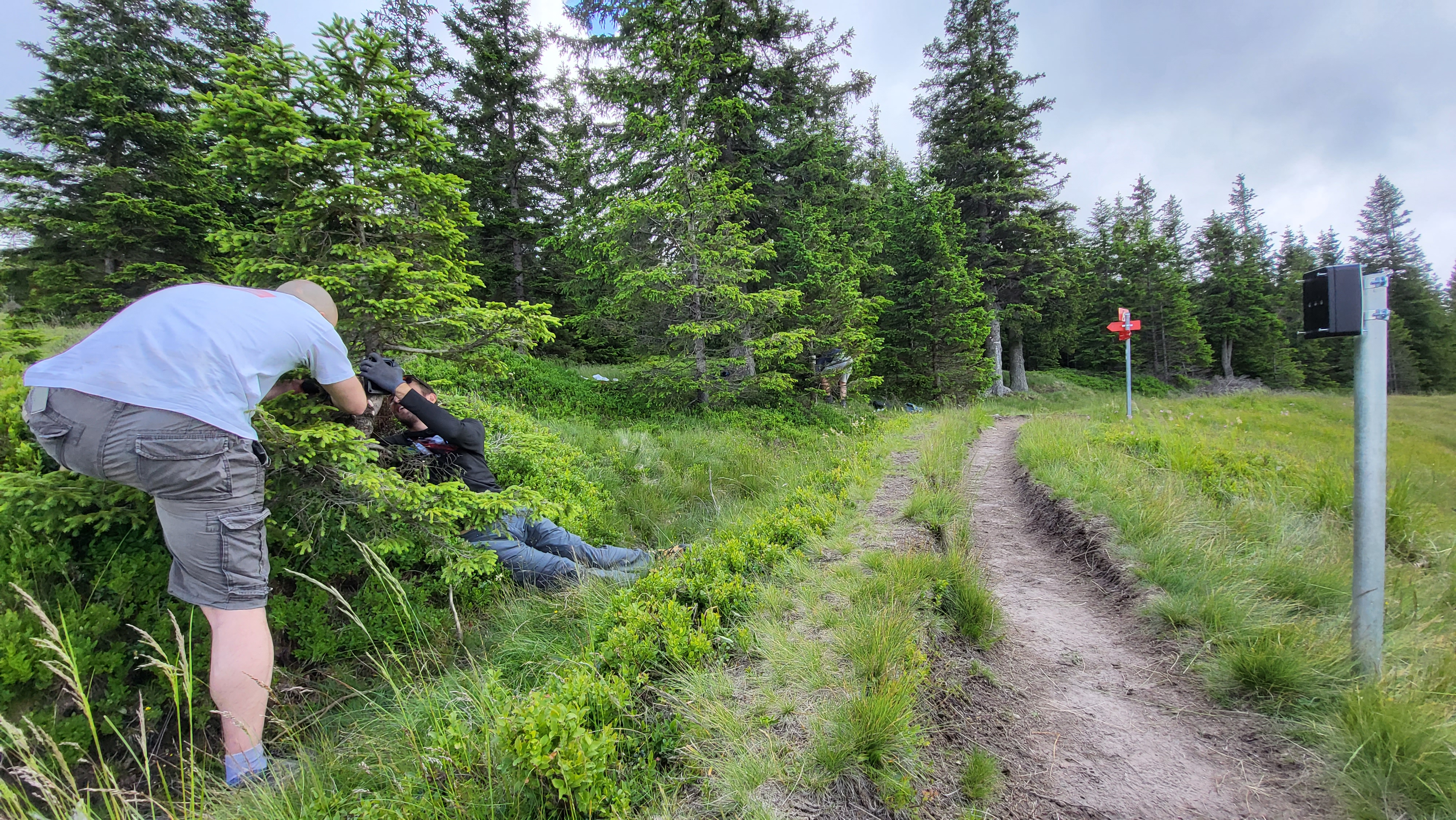Nameščanje števcev, Lovrenška jezera, junij 2022. Arhiv PZS