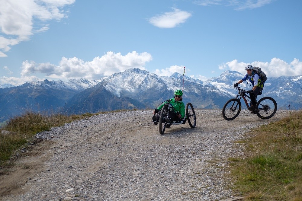 Usposobila se je za učiteljico smučanja z monoskijem in v vlogi doživljajske pedagoginje v letih 2018 in 2019 spremljala skupino članov Avstrijske planinske zveze pri prečkanju Alp, pri tem pa ves čas sodelovala pri pripravah, od seznanjanja in načrtovanja ture do njene izvedbe. Skupina športnih navdušencev je na gorskih in posebnih ročnih kolesih, prilagojenih za invalide, v več etapah po večinoma neutrjenih poteh od Scharnitza v Nemčiji do kraja Torbole ob Gardskem jezeru prekolesarila več kot 500 kilometrov in 10.000 višinskih metrov. V skupini so bile gibalno ovirane, a tudi neovirane osebe. »Na poti pa smo se v nekem trenutku vprašali: kdo od nas je sploh ‘pravi’ invalid? Nekdo ne more premikati nog, drugi pa je včasih negibljiv in neprilagodljiv v svoji glavi.« Vse je pač vzajemno učenje. Zelo zahtevno, a povsem uresničljivo je biti kot uporabnik invalidskega vozička mobilen in obenem prijazen do okolja. Naj si bo nakupovanje, obiskovanje terapij ali plavanje: Andrea opravi številne vsakdanje poti na vozičku z električnim priklopom. Na tečaje monoski smučanja se sicer vozi z avtomobilom, saj takrat ostane teden ali dva v kraju, kjer poteka tečaj, na športnih izletih pa uporablja ročno kolo ob pomoči motorja – na šesttedenskem potovanju s kolesom po Španiji je prevozila več kot 2000 kilometrov! Redkeje potuje z letalom. Turo Inklusive TRANSALP do Gardskega jezera je njena skupina opravila kljub snežnim metežem in prekinjeni etapi. »Naš največji uspeh je bil to, da smo težave preživeli in jih skupaj premagali.«