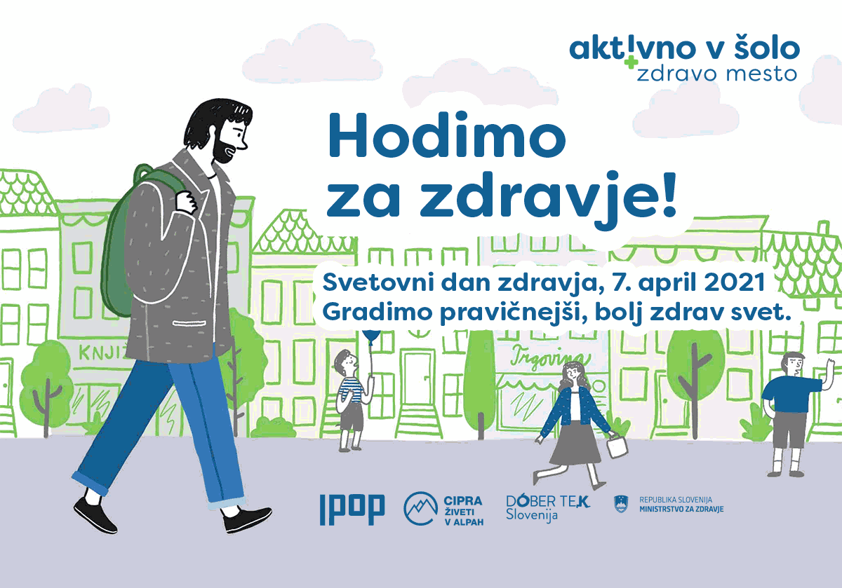 Letos 7. april, Svetovni dan zdravja, poteka pod geslom Gradimo pravičnejši, bolj zdrav svet. Svetovna zdravstvena organizacija ob tem poudarja problem neenakosti v zdravju, ki se v času spopadanja z epidemijo COVID-19 še povečuje. Problem naslavlja tudi program Aktivno v šolo in zdravo mesto, ki zagovarja zdravstvene koristi hoje in načrtovanje hoji prijaznega okolja.