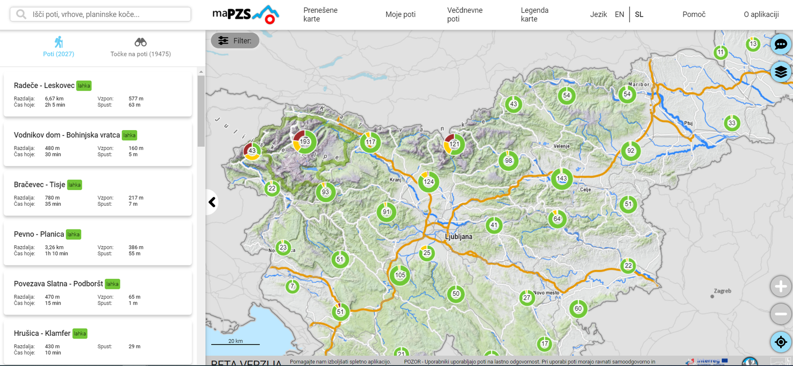 Na podlagi realnih podatkov bomo pridobili dejanski prikaz stanja obiska slovenskih gora (pilotne lokacije). Pridobljeni podatki bodo služili za analitičen prikaz in nujne napovedi tokov obiskovalcev na določeni lokaciji. Z nadgrajeno spletno aplikacijo (mapz.pzs.si) bomo uporabnike lahko preko uporabe javnega potniškega prometa preusmerjali na manj obremenjene lokacije, s tem jim bomo omogočali večjo varnost, kakovostno doživljanje narave, hkrati pa zniževali okoljski odtis (promet, presežene nosilne zmogljivosti območja, smotrnejša raba virov).